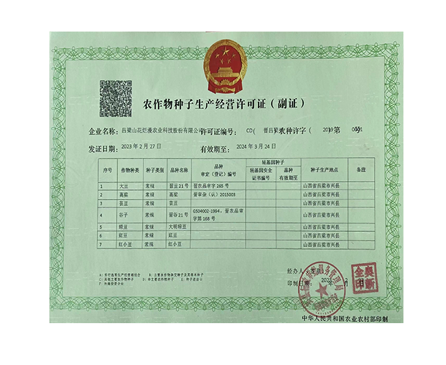 呂梁山花爛漫農(nóng)業(yè)科技股份有限公司是山西省農(nóng)業(yè)產(chǎn)業(yè)化重點龍頭企業(yè),公司成立于2008年,法人代表賀虎平,注冊資本1000 萬元,現(xiàn)有員工 30 人。公司位于興縣蔡家會鎮(zhèn)蔡家會村建有占地面積1萬多平方米生產(chǎn)區(qū)和辦公區(qū),年總加工雜糧能力達到4萬噸。擁有一套日精加工50噸谷子成套設(shè)備生產(chǎn)流水線;擁有一套日精加工30噸豆面、蕎面設(shè)備流水生產(chǎn)線;擁有一套日精加工50噸紅小豆、豇豆、綠豆、腎型黃豆、紅蕓豆設(shè)備流水生產(chǎn)線,2020年引進省農(nóng)科院農(nóng)產(chǎn)品加工研究所谷子精深加工技術(shù),目前設(shè)計年產(chǎn)300噸的小米油加工一條龍生產(chǎn)線已經(jīng)安裝調(diào)試完畢,產(chǎn)品經(jīng)化驗達到國家一級油標準,并獲得兩項專利證書。主要產(chǎn)品有“山花爛漫”牌有機小米、綠色小米各種精美包裝系列;蔡家會村豇豆面、豌豆面等雜糧面、手搟豆面系列、以及有機精品雜糧系列。擁有“山花爛漫”山西省著名商標。公司采用線下和線上銷售相結(jié)合的營銷模式。